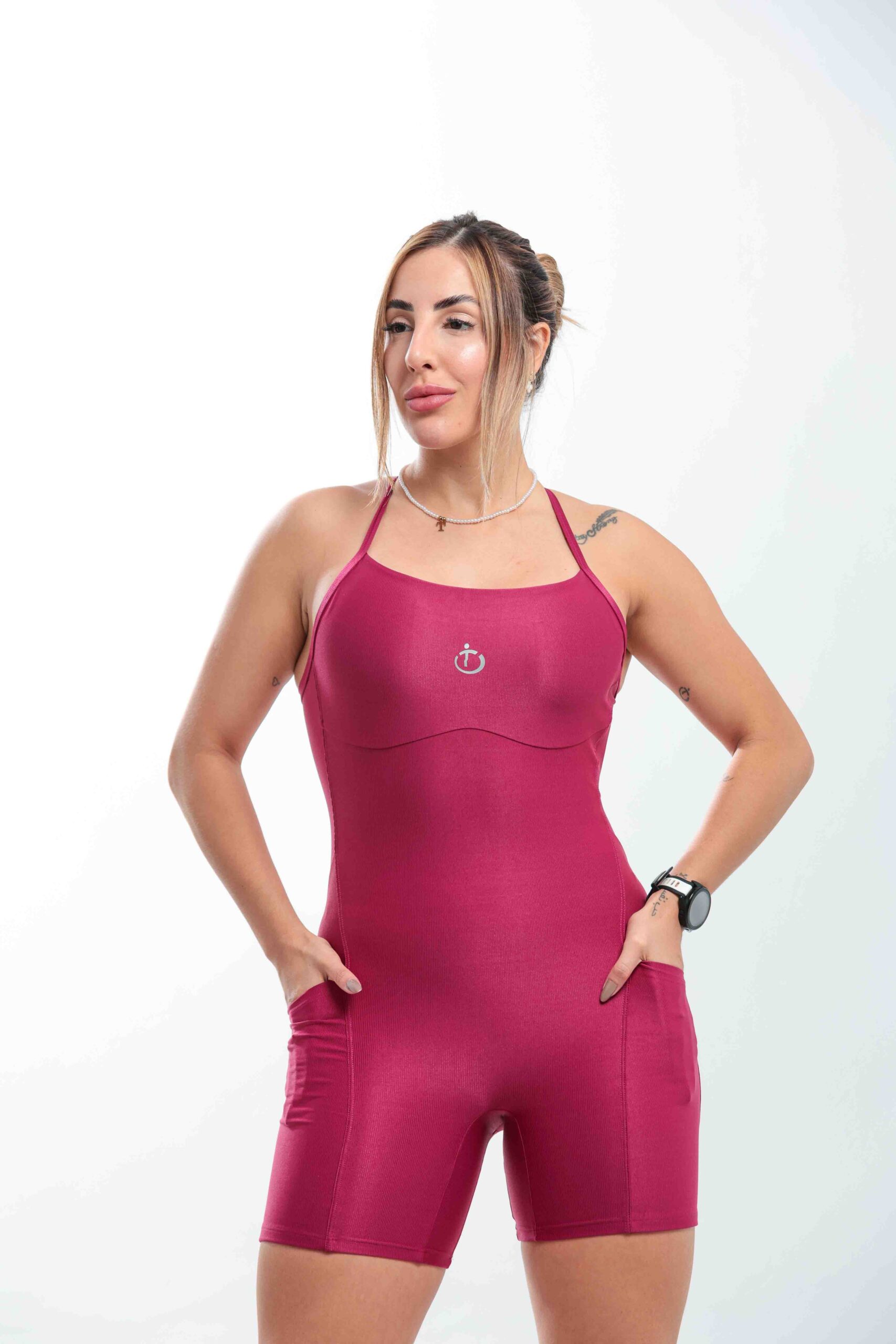 Macaquinho confeccionado em tecido canelado premium, com alta compressão que modela o corpo sem limitar os movimentos. Possui decote em X nas costas, valorizando a silhueta e garantindo sustentação, além de bolso lateral funcional, ideal para celular ou pequenos objetos durante o treino.